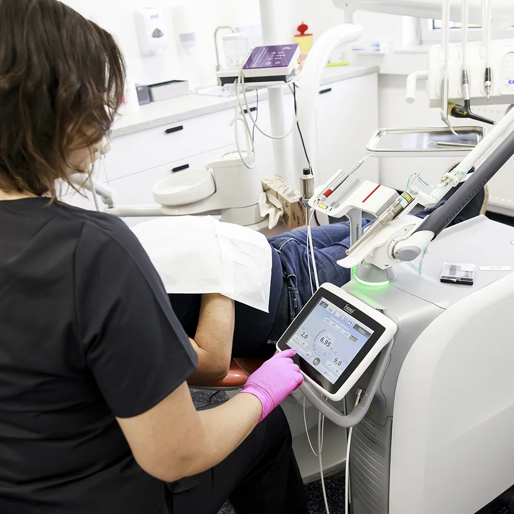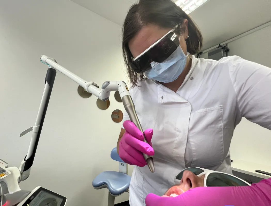 Na kliniki v Kranju ponujamo vrhunsko storitev beljenja zob s Fläsh lučko, ki zagotavlja varne in dolgotrajne rezultate. Fläsh tehnologija uporablja belilni gel z nižjo koncentracijo peroksida (32 % v primerjavi s klasičnimi 40 %), kar zmanjša možnost skelenja in ohranja sklenino zdravo. Ta metoda omogoča bolj udobno izkušnjo, saj zmanjša občutljivost zob, hkrati pa skrajša čas nanosa zaradi večje učinkovitosti lučke.
