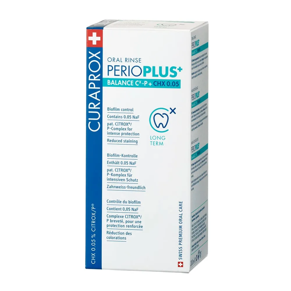 Koncentracija klorheksidina: 0,05 %. Perio Plus+ Balance zmanjšuje tveganje za zobno gnilobo in gingivitis ter je idealna ustna voda za dolgotrajno uporabo. Prav tako lahko izboljša rezultate čiščenja za osebe z zmanjšanimi motoričnimi sposobnostmi.